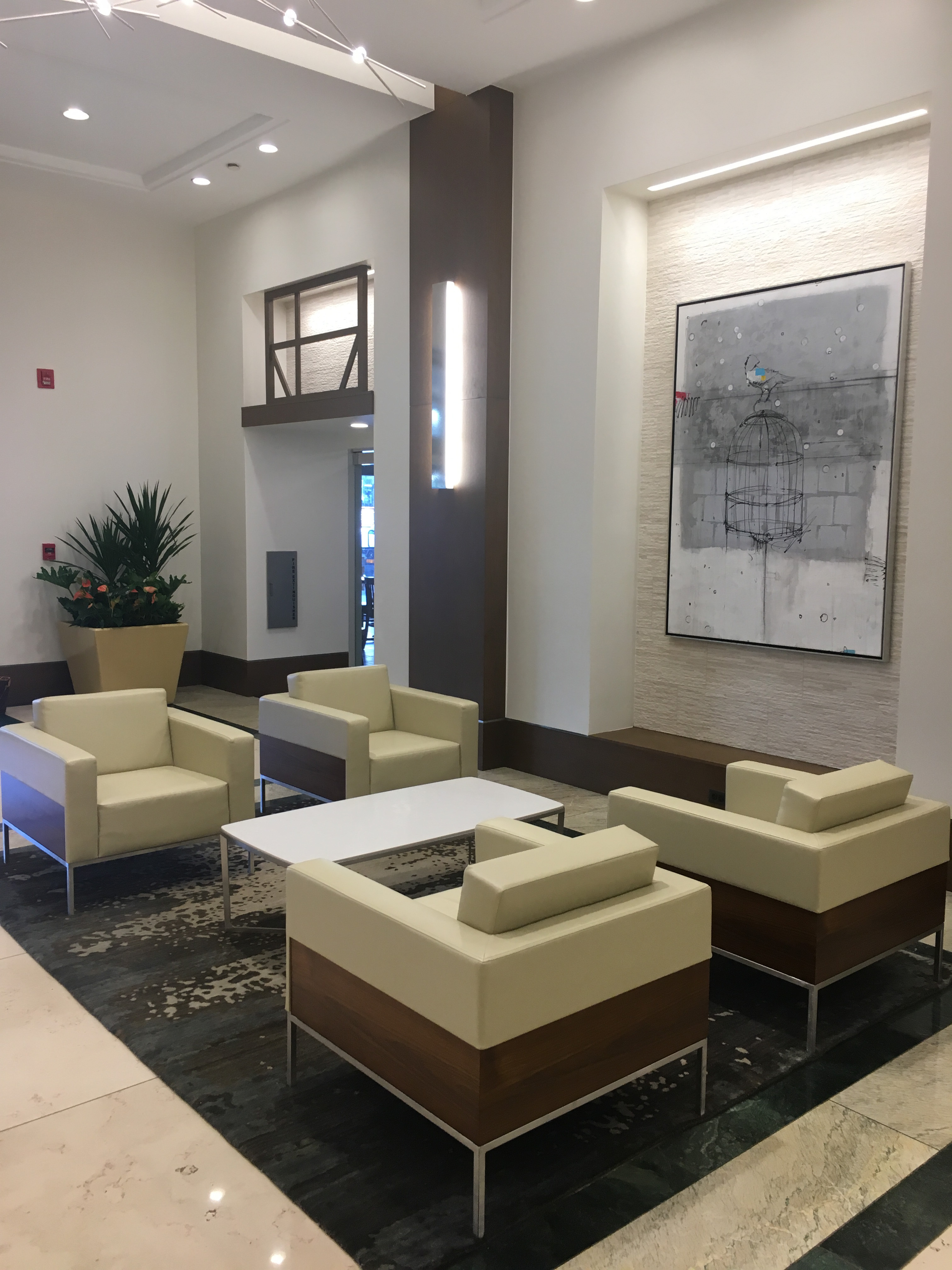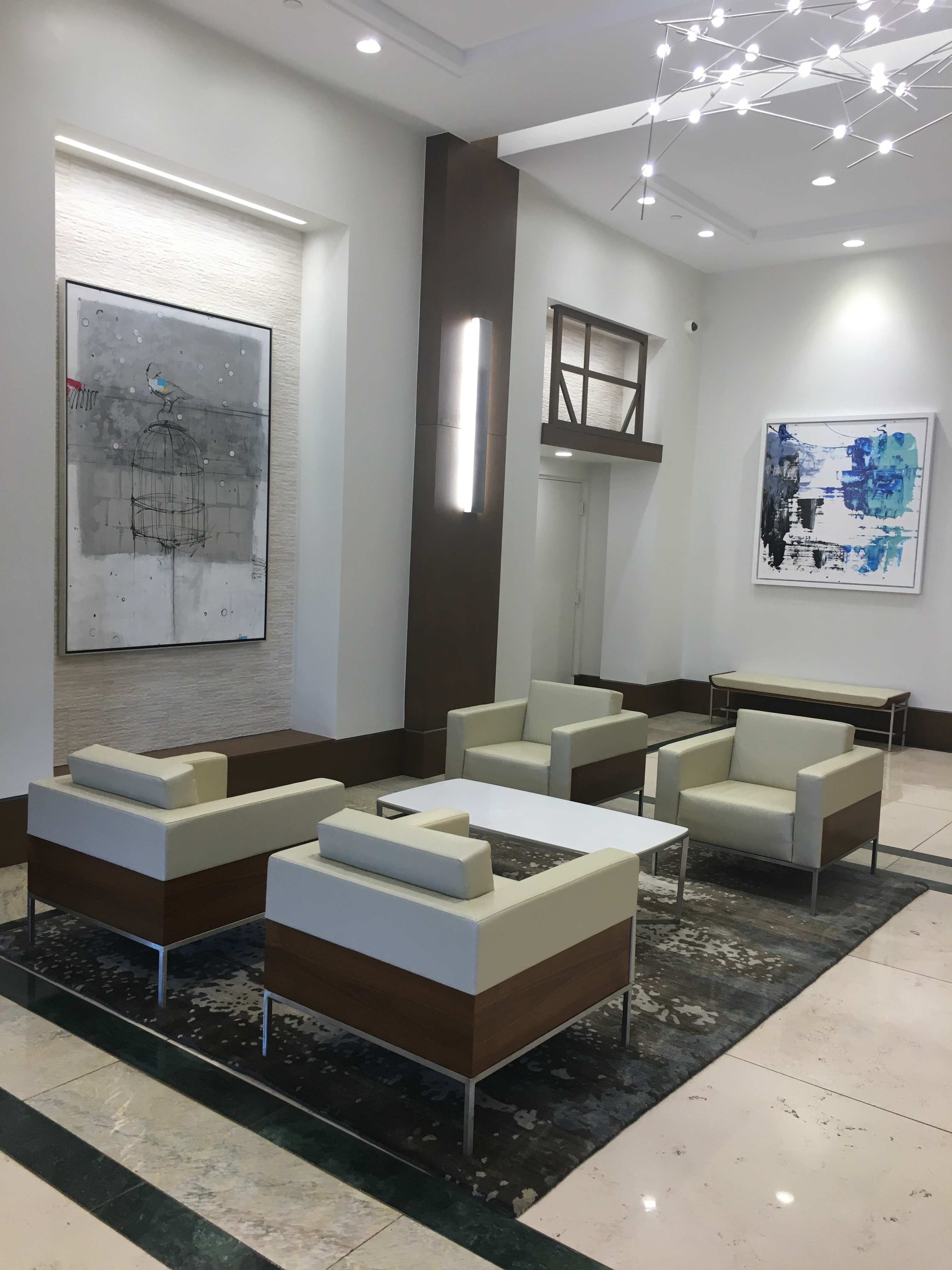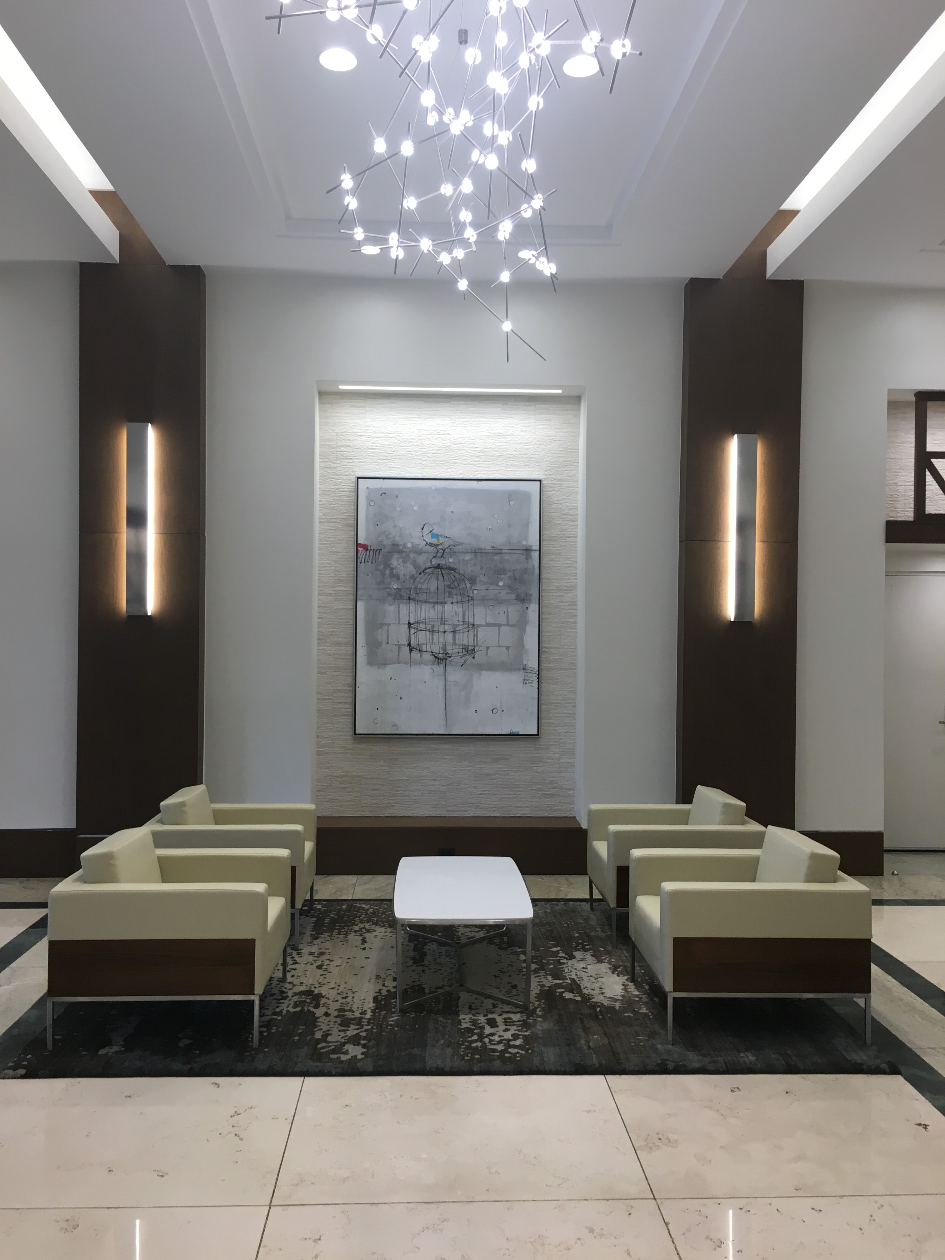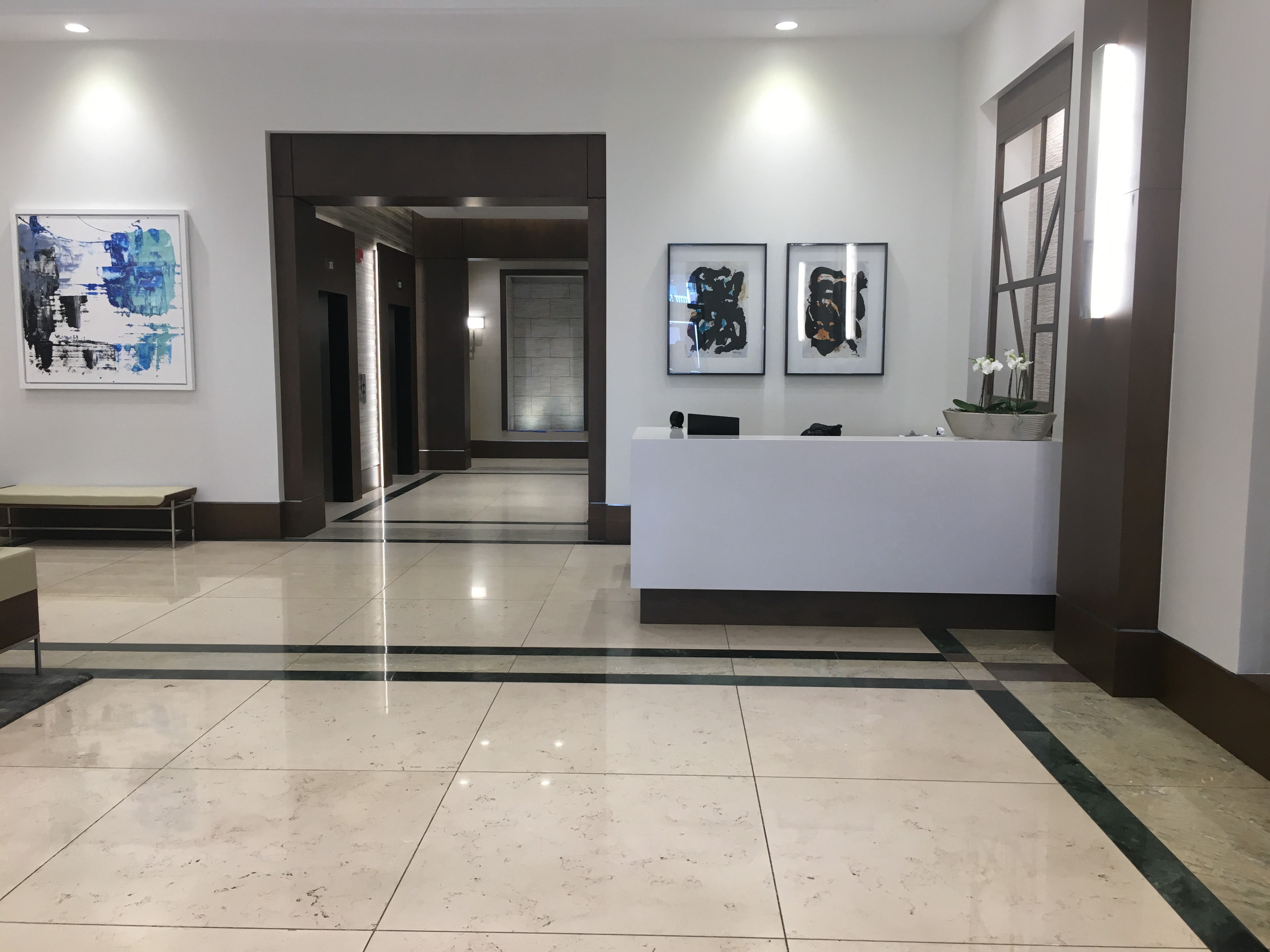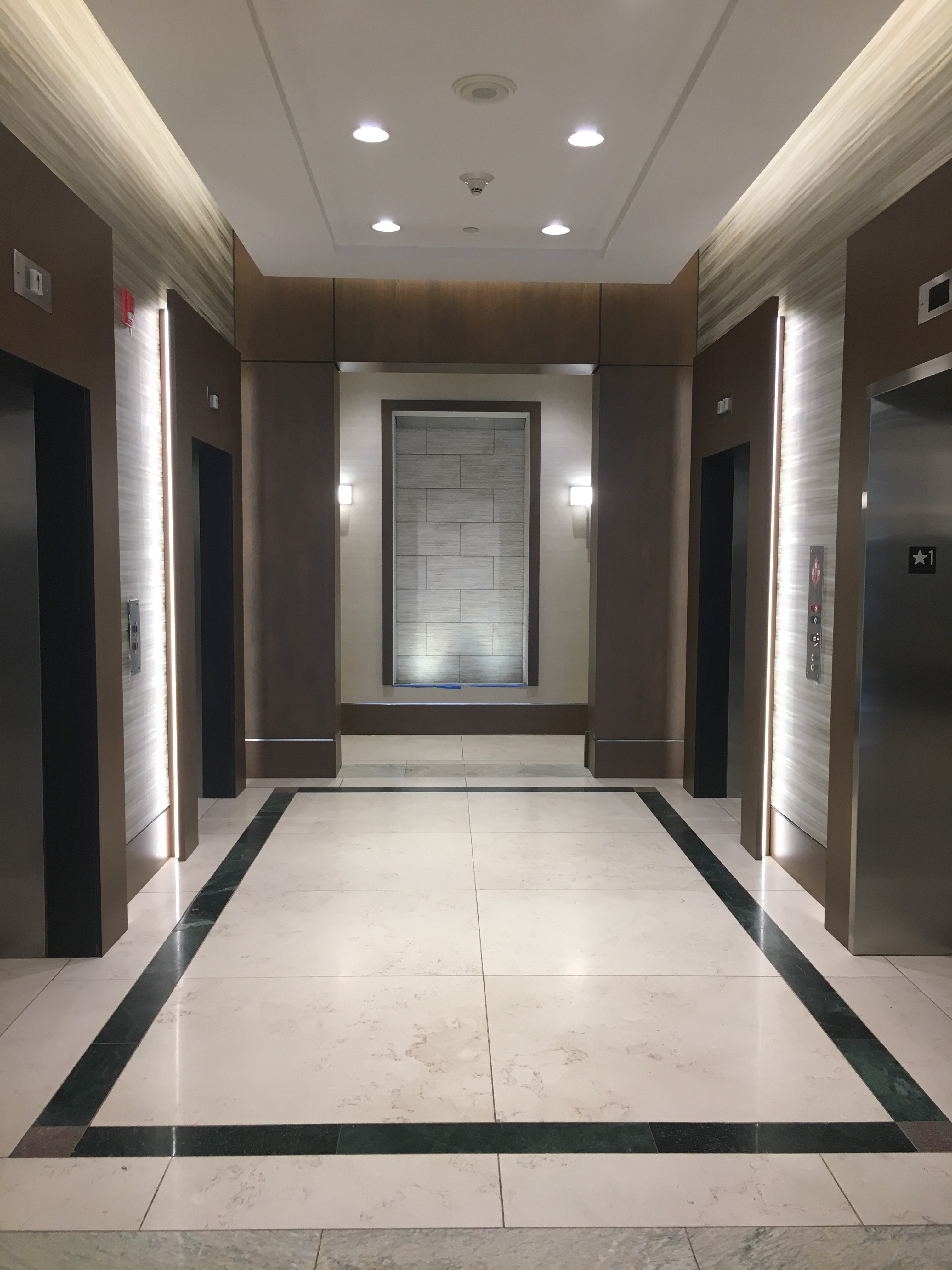 - New building lobby renovation, including water feature, lighting, millworks, artwork, digital directory with multi-media features, Building security station and furniture.